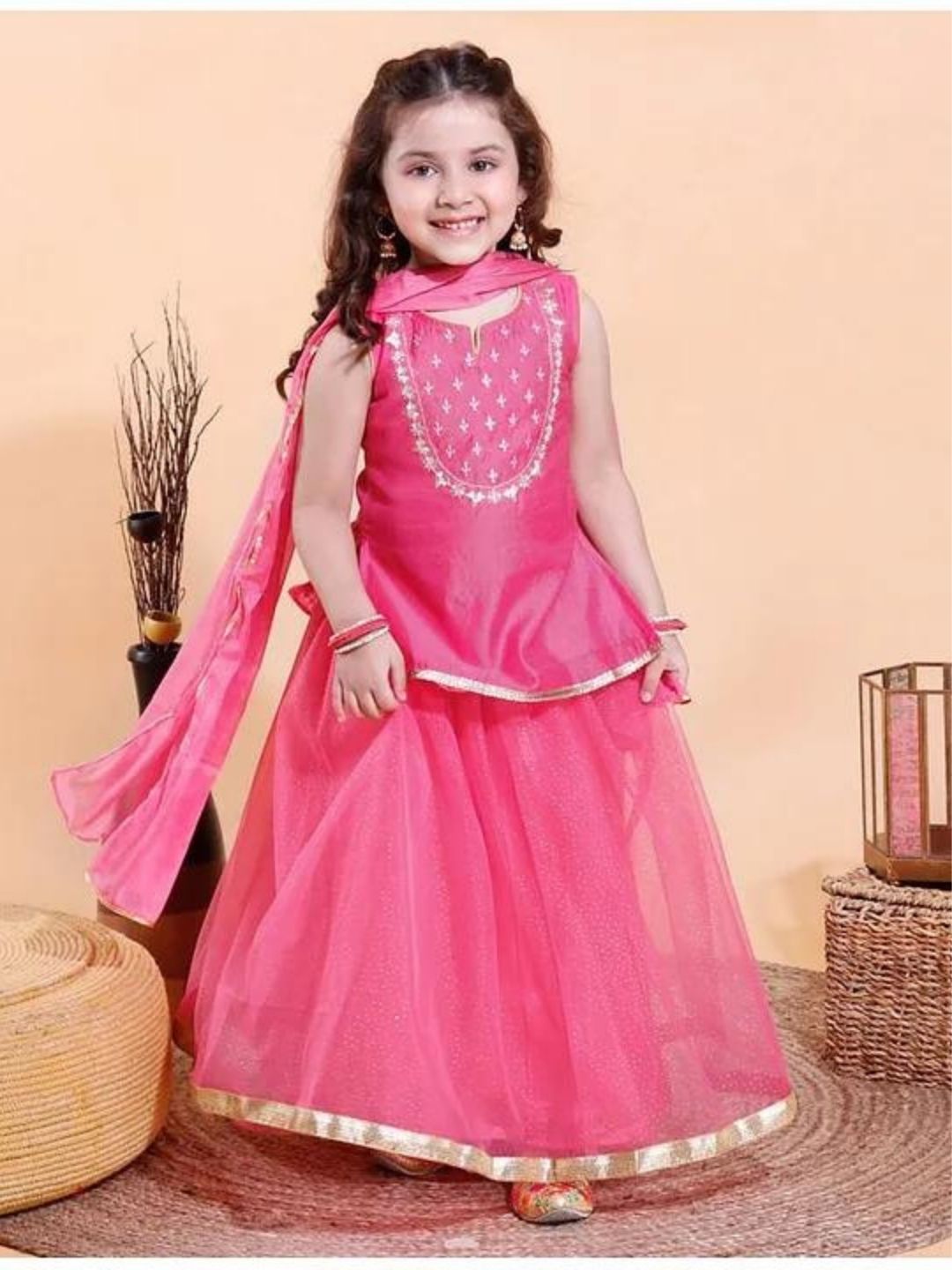 Sleeveless Embroidered Choli & Flared Lehenga With Dupatta - Pink