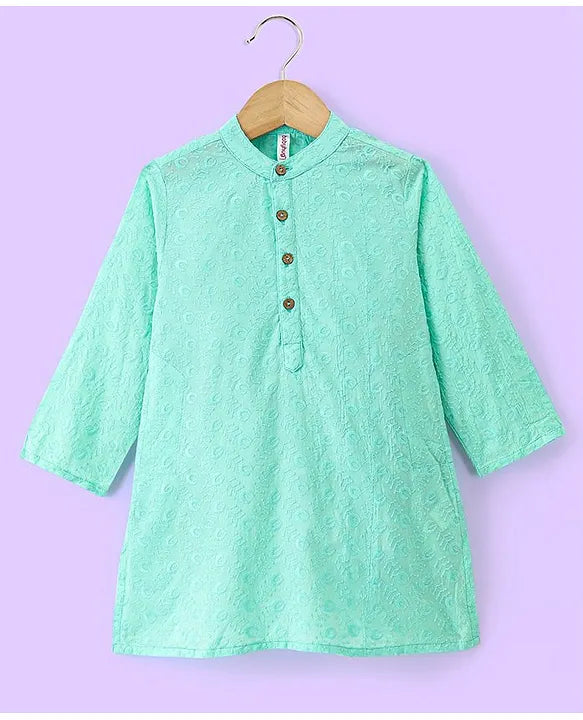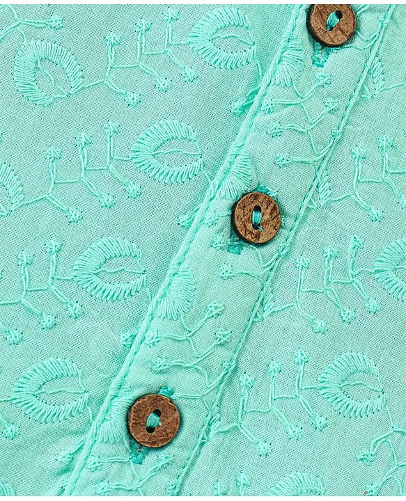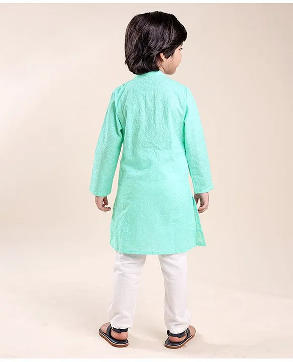 Three Full Schiffly Embroidered Kurta With Pyjama Set-Turquoise