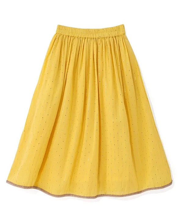 Cotton Lurex Woven Frill Sleeves Floral Embroidered Choli Lehenga Set with Dupatta Frill & Lace Detailing - Yellow & Blue