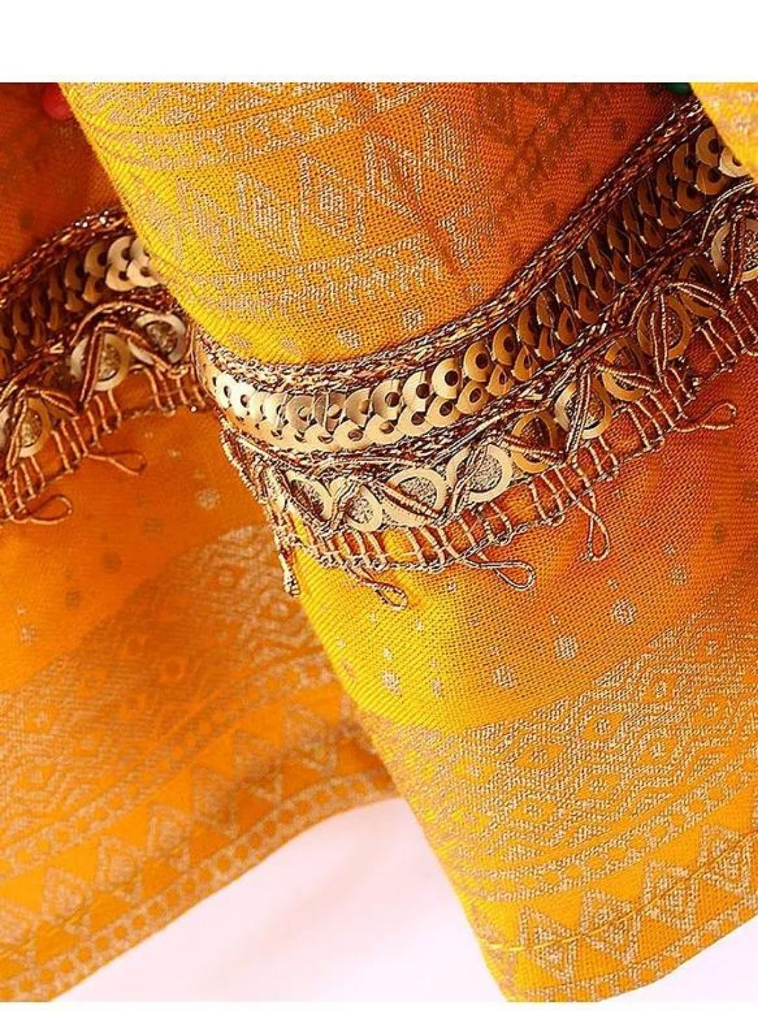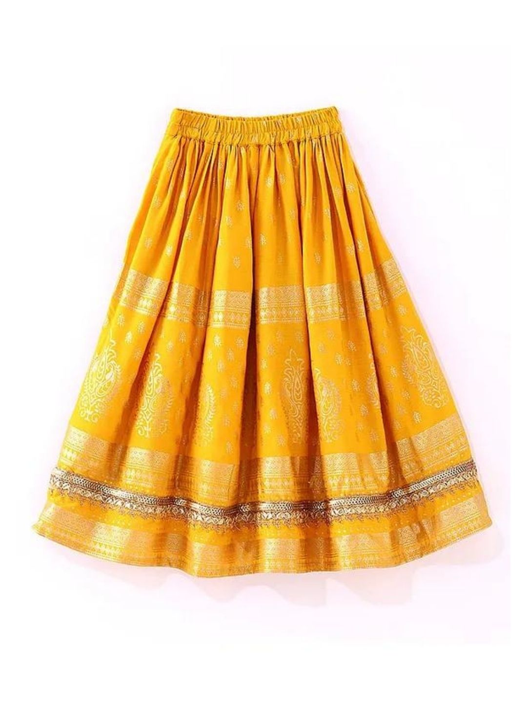 Woven Half Sleeves Choli & Lehenga With Dupatta Set Gold Foil Print - Yellow
